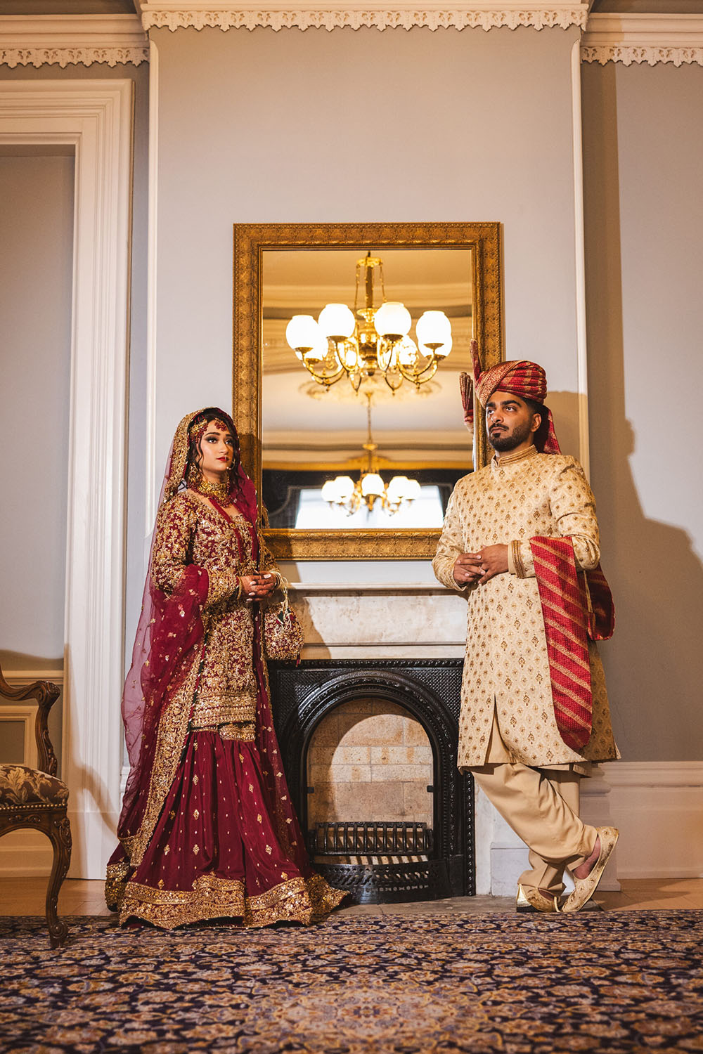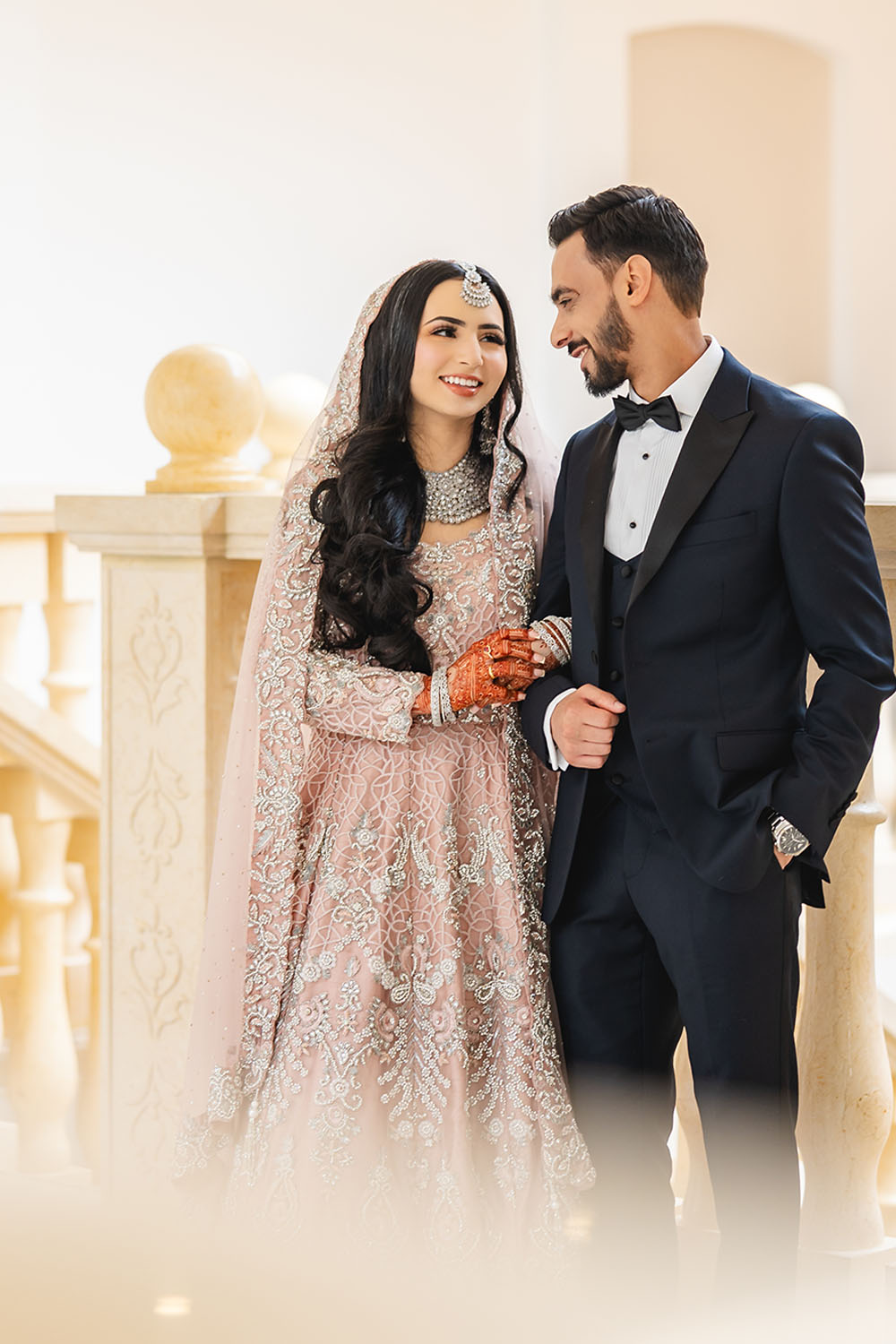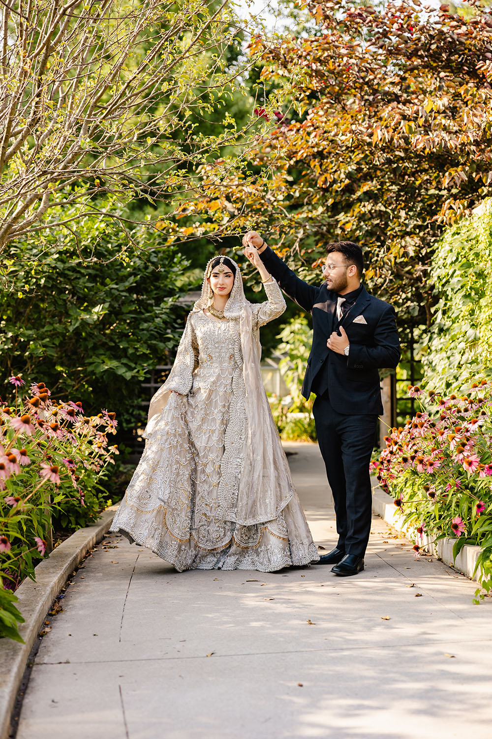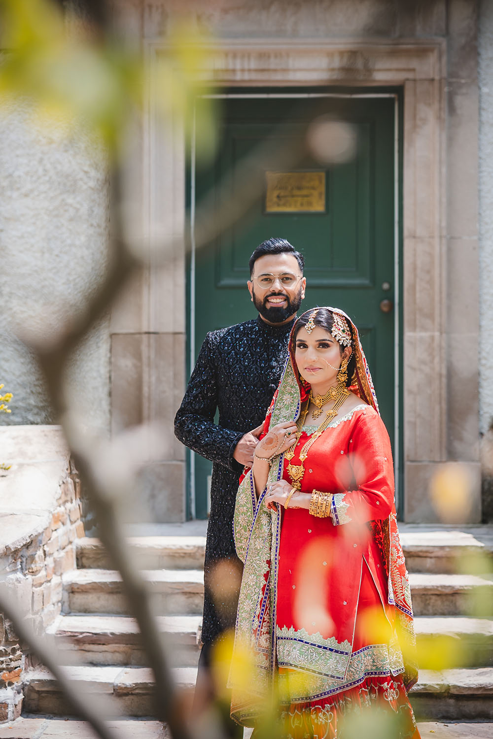 Pakistani bride and groom pose for a reception-at riverwood conservancy